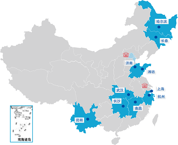 哈尔滨 长春 济南 潍坊 武汉 长沙 南昌 上海 杭州 昆明